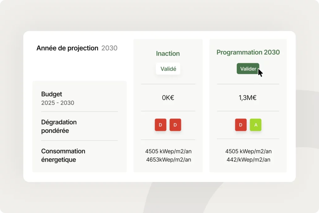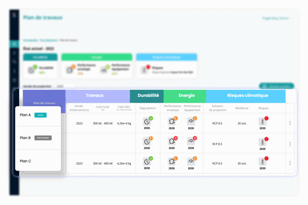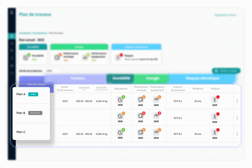 Sitowie vous permet de passer d’une gestion réactive à une gestion proactive. En quelques clics, vous accédez à une vision claire de l’état de vos actifs, simulez des scénarios de travaux, et mesurez leurs impacts financiers et extra-financiers. Vous alignez vos investissements sur vos objectifs, tout en préservant la valeur de votre portefeuille.